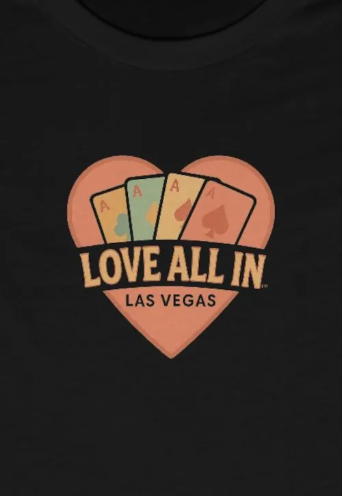 Love All In™ Las Vegas, Heart, Luxury Women’s Graphic Tee T-Shirt, Boyfriend, Poker Cards, Aces, Design 2