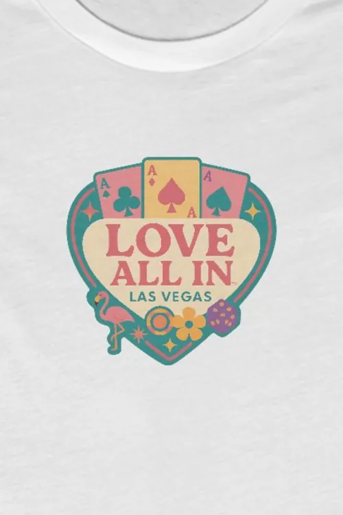Love All In™ Las Vegas, Heart, Luxury Women’s Graphic Tee T-Shirt, Boyfriend, Poker Cards, Flamingo, Dice, Chips, Design 4