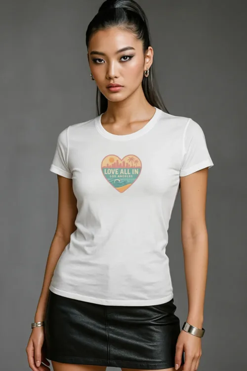 • Love All In™ Los Angeles, Heart, Luxury Women’s Graphic Tee T-Shirt, Boyfriend, Design 1