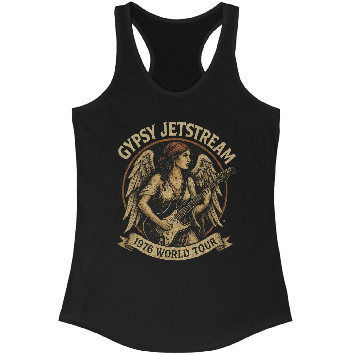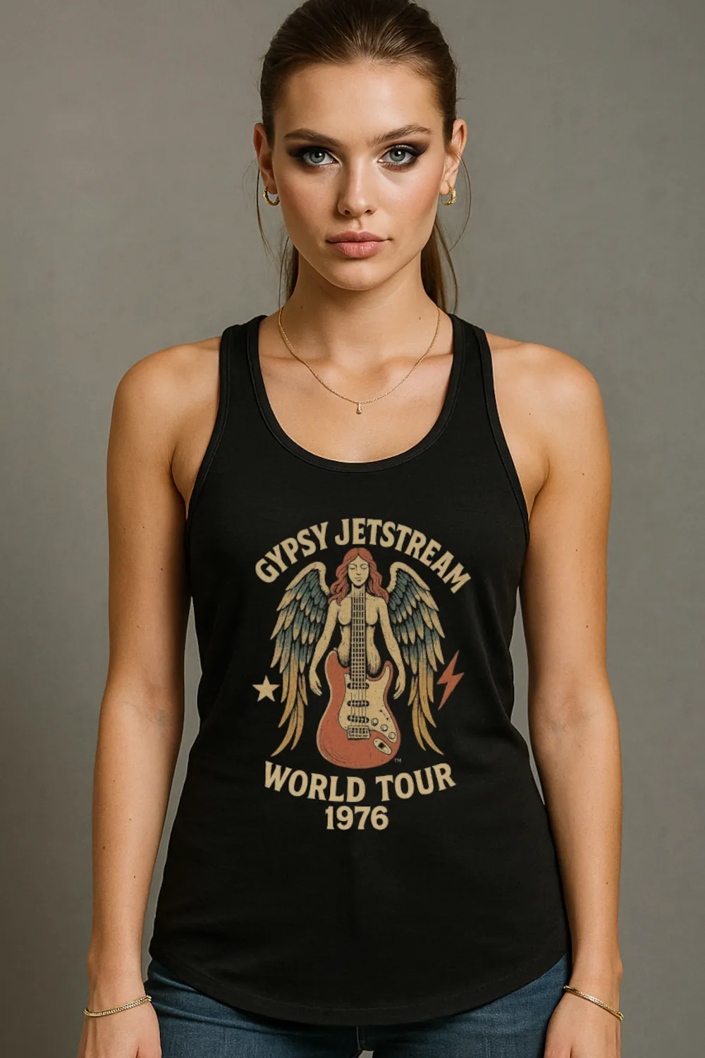 Gypsy Jetstream™ Vintage Rock Band Women’s Graphic Racerback Tank Top, Angel, Guitar, World Tour 1976, Official Merchandise, Design 1