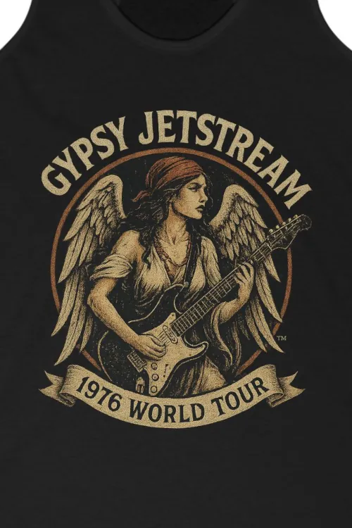 Be the first to review “Gypsy Jetstream™ Vintage Rock Band Women’s Graphic Racerback Tank Top, Angel, Wings, Guitar, 1976 World Tour 1970s, Official Merchandise, Design 1”
