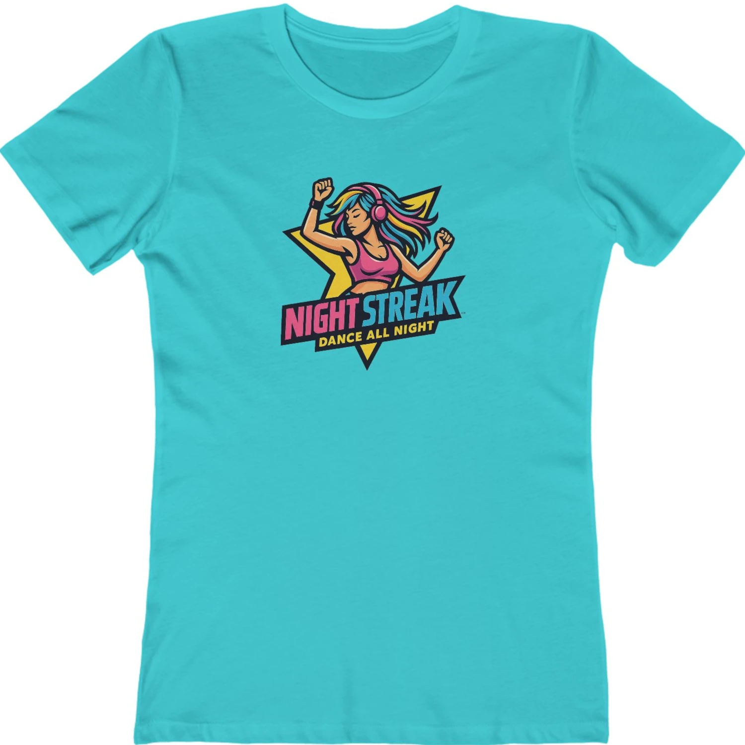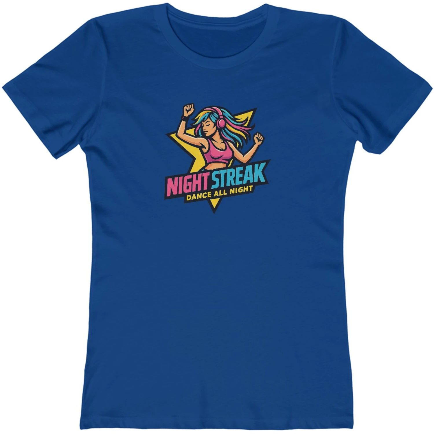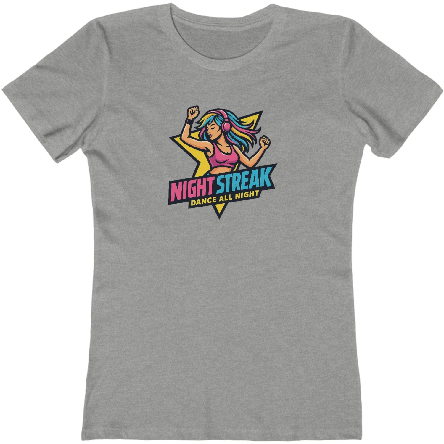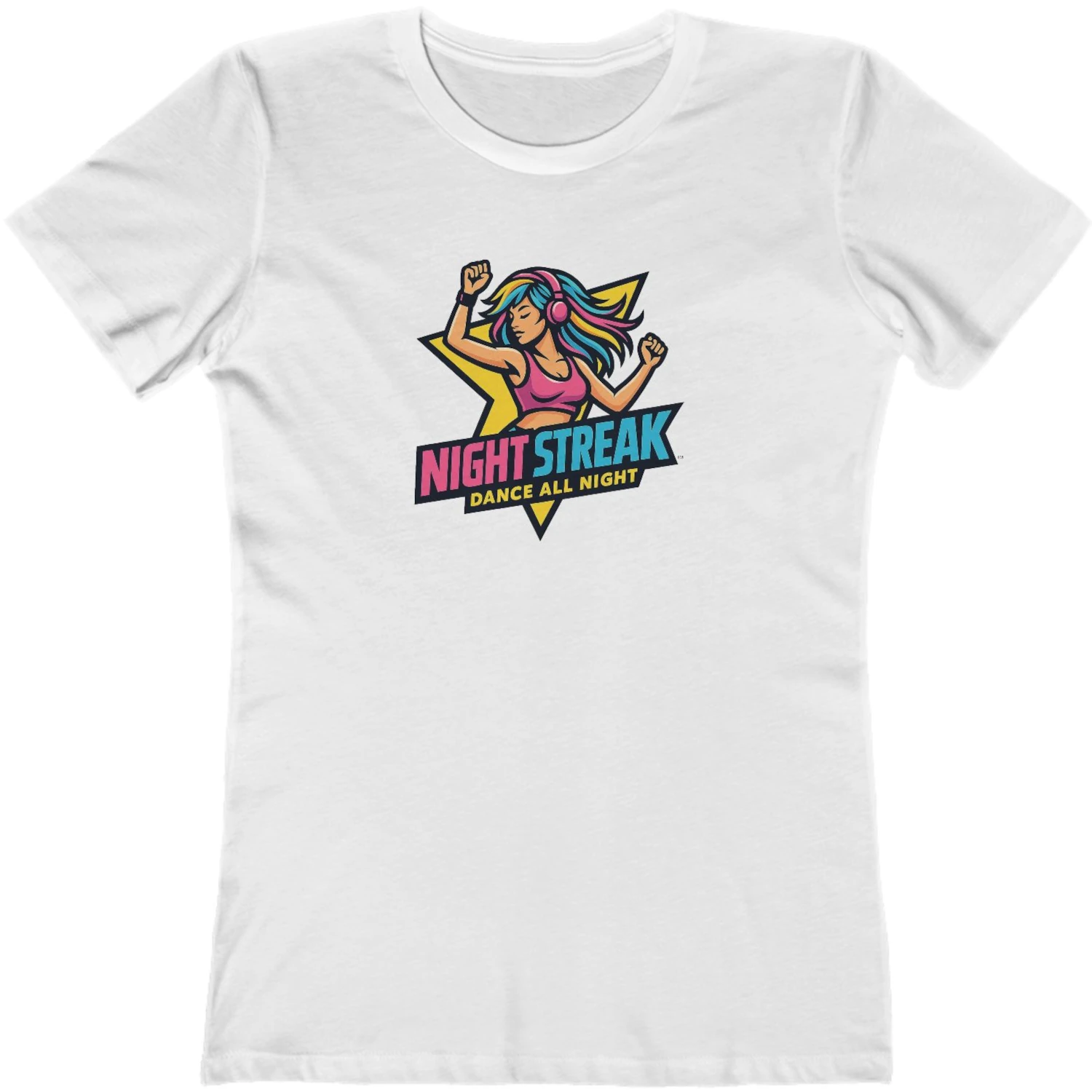 Night Streak™ Dance All Night, Women’s Luxury Graphic Tee T-Shirt, Boyfriend, Design 1